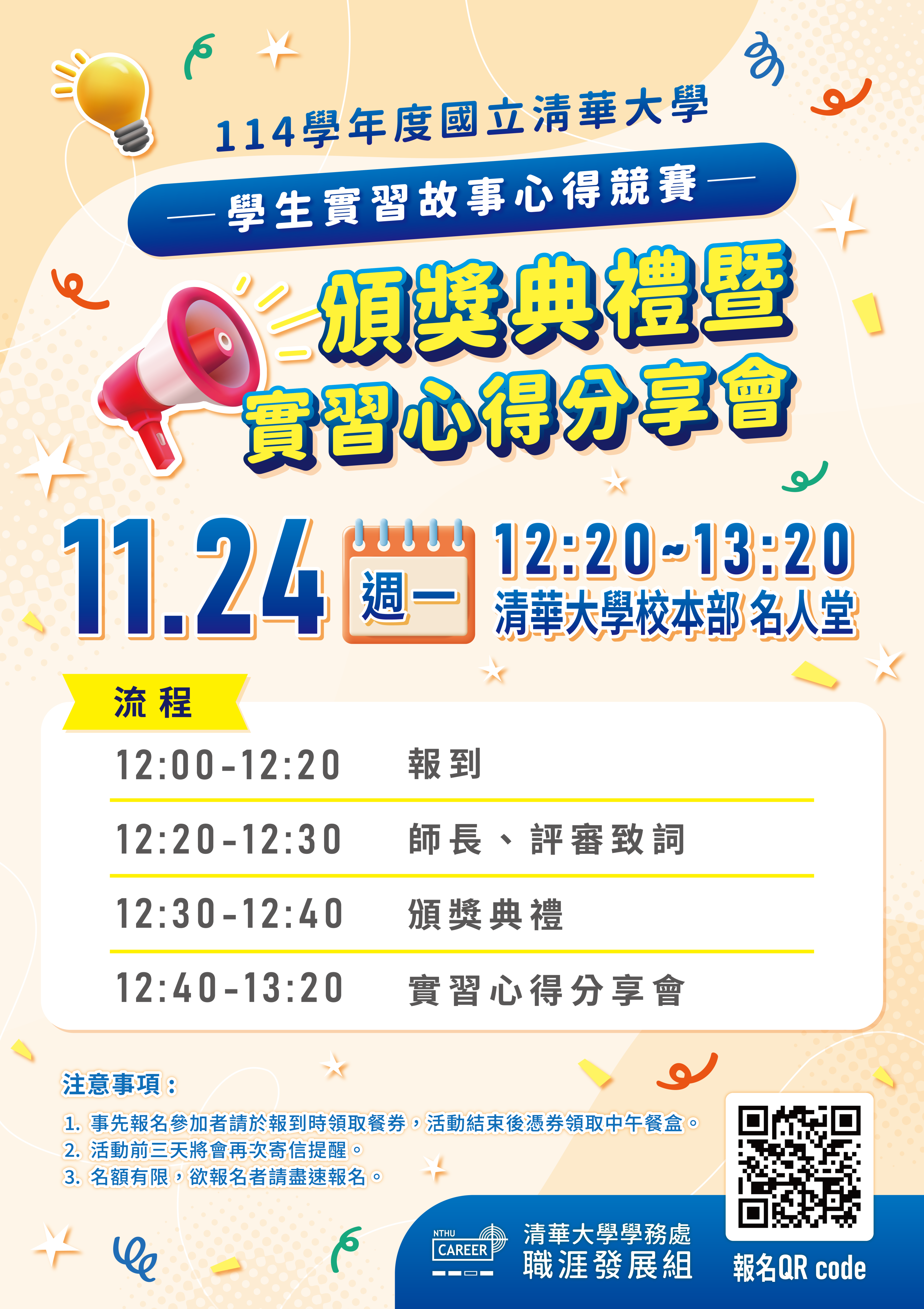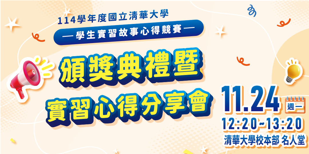 114學年度國立清華大學學生實習故事心得競賽頒獎典禮暨實習心得分享會