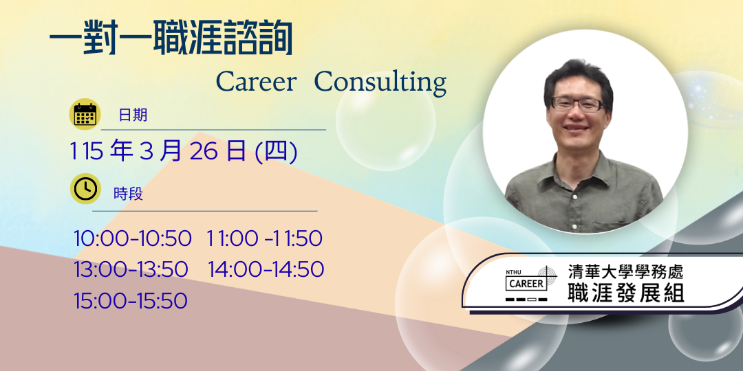 報名訊息如有疑問請洽職涯發展組黎小姐 分機62430 Email:minying@mx.nthu.edu.tw