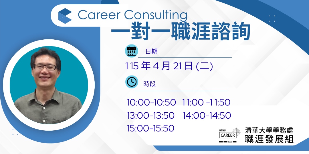 報名訊息如有疑問請洽職涯發展組黎小姐 分機62430 Email:minying@mx.nthu.edu.tw
